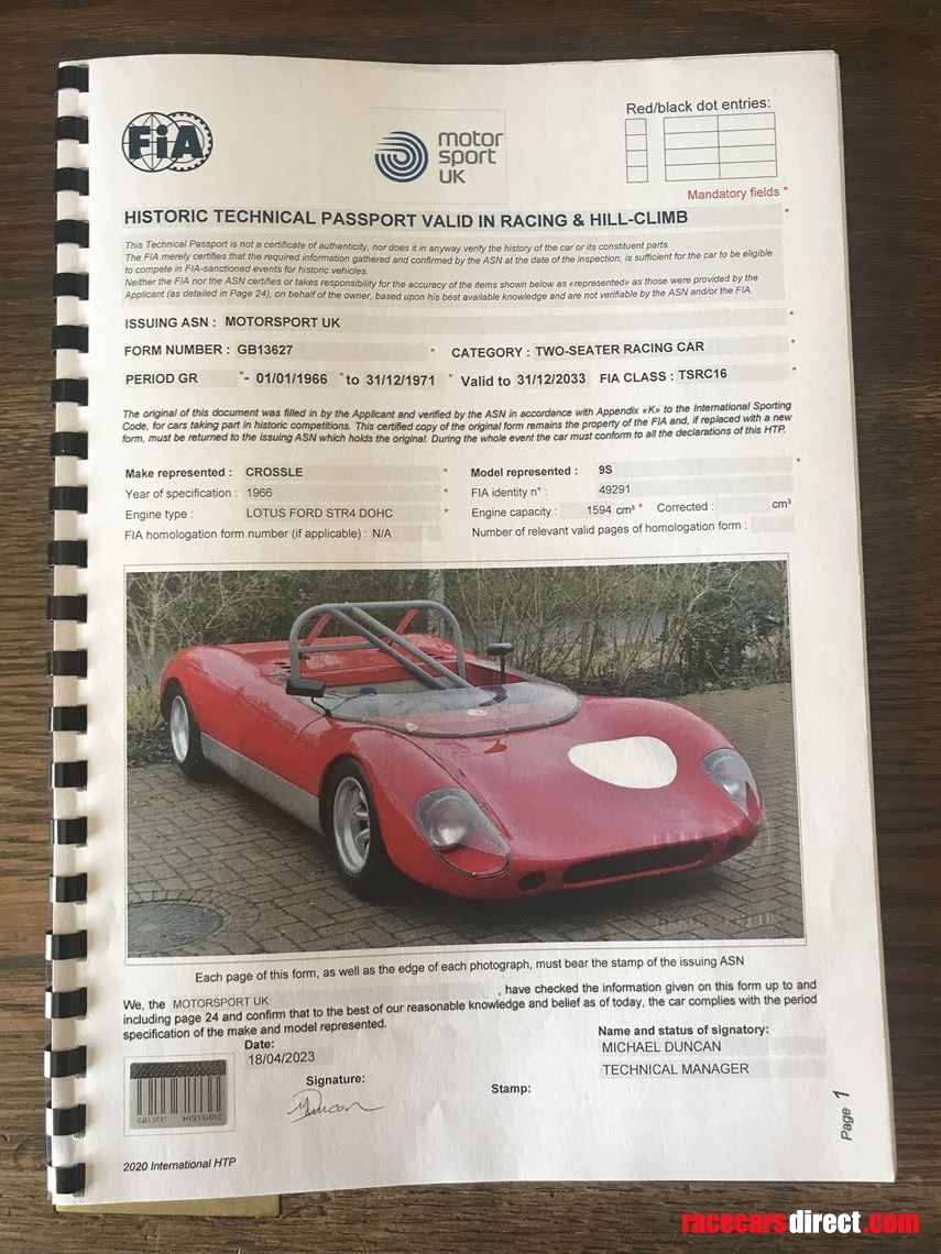 1966 Crossle C9S Sports Racing car, Chassis no 26, just out of a long term restoration. FIA HTP papers granted April 2023.