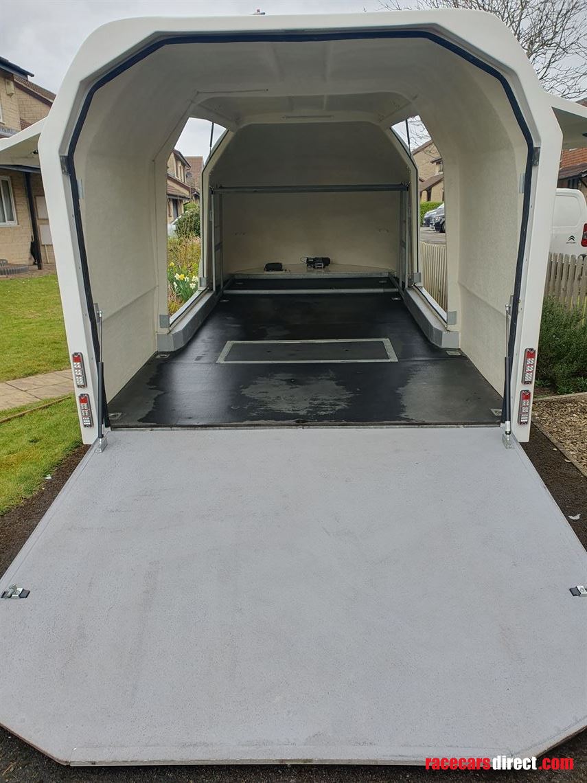 Very low mileage 2017 ECO-TRAILER Velocity RS enclosed car trailer in good condition with 4 new tyres recently fitted.