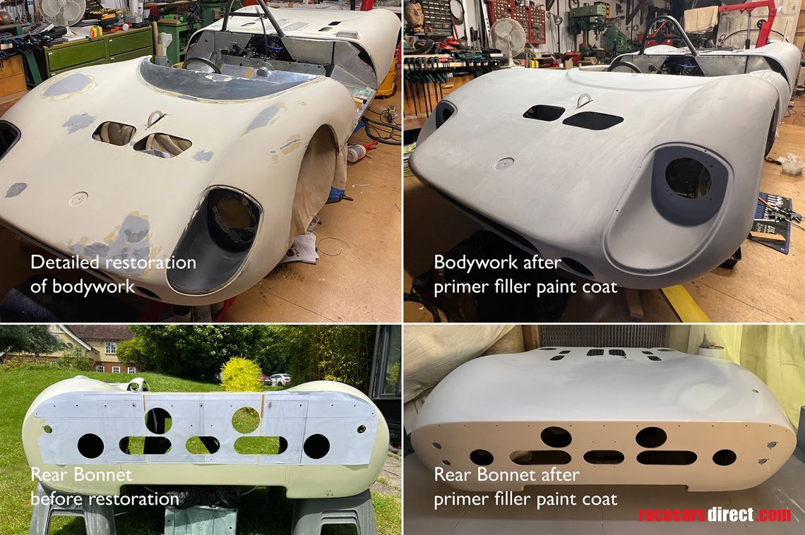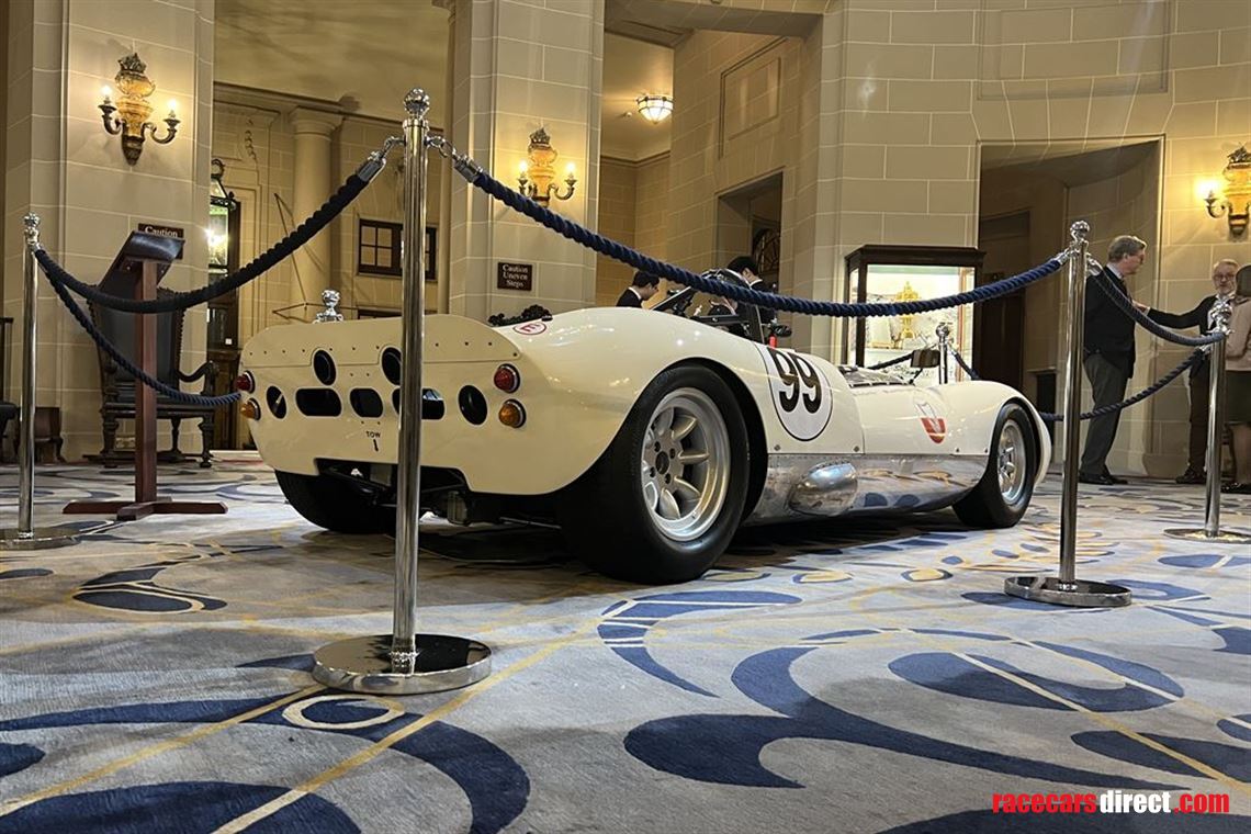 In 2016, new owner John Monson instigated further development restoration done by historic race car specialists, R M Wilson Engineering - installing the current 4.6 ltr Oldsmobile/Buick V8 breathing via quad 48 Weber IDF carburettors.