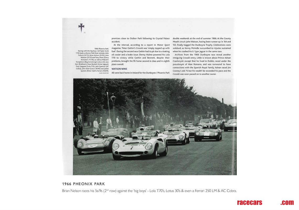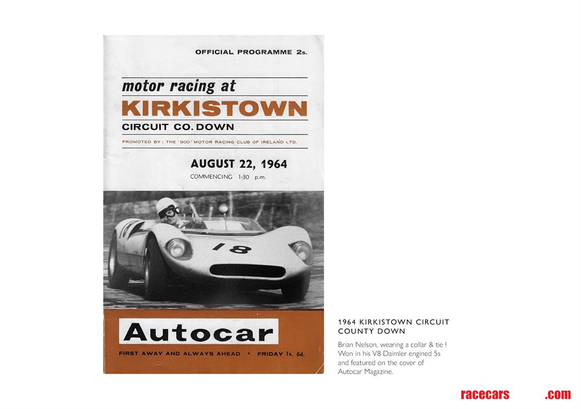 Nelson, who is remembered as one of Ireland’s top drivers in Formula 2 and International Rallying, competed in ‘C5S-64-13’ throughout the 1964 & 1965 seasons in the Guards Trophy at Phoenix Park, Bishops Court and Kirkistown. Over the winter of 1964 & 1965, the car was modified to accept the wider bodywork introduced by the factory for the 7s model, continuing to compete throughout the 1965 season with the Daimler V8. In 1966, in line with other cars being developed by the factory, it became a longer wheelbase 9s with a 2.0-litre BMW engine. ‘C5S-64-13’ was then sold to Michael Martin and then to John le Sage, who fitted a 2.5-litre Repco engine.