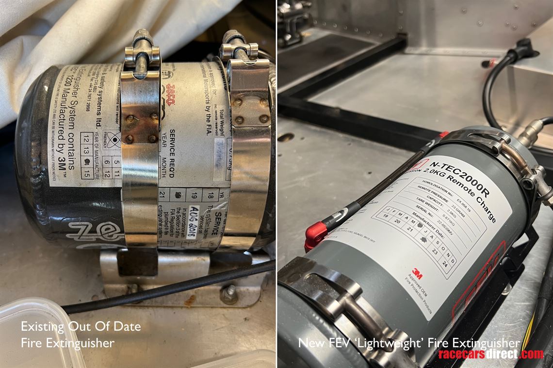 FEV 2kg Novec remote charge fire extinguisher with kit - 2 nozzles in the cabin and 3 in the engine bay – serviced in 2024
