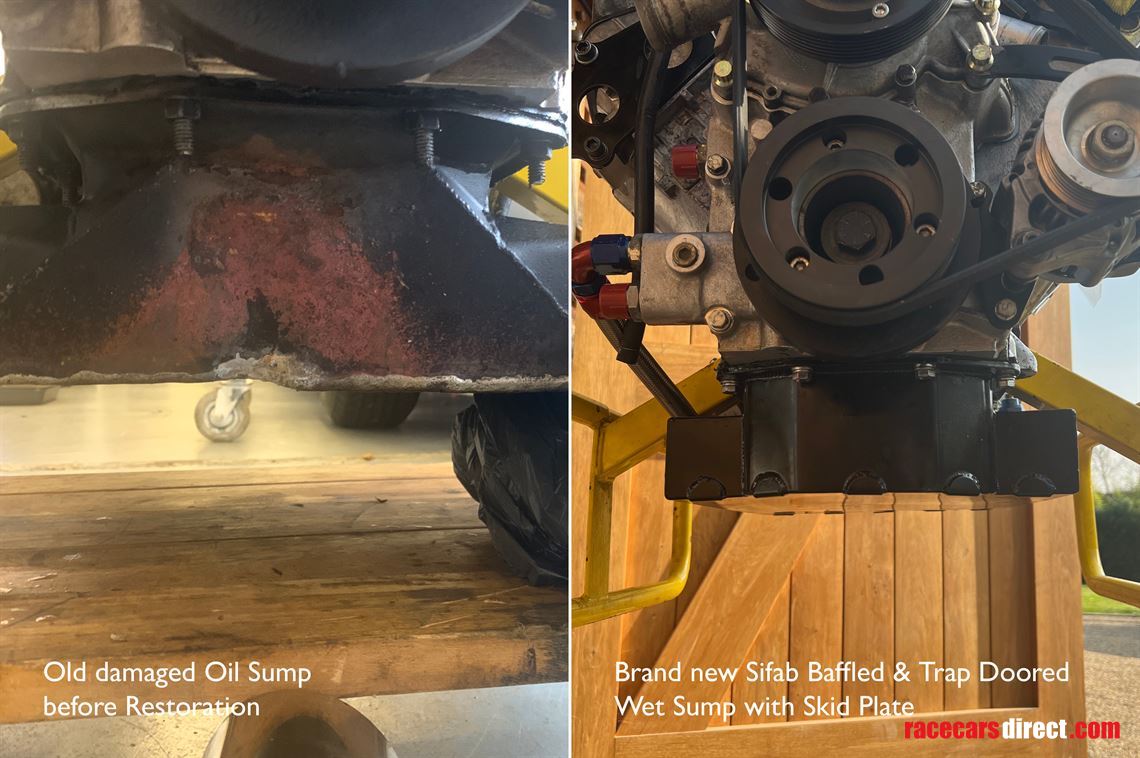 Specialist made ‘big wing’ oil sump with baffles & trap doors contained in custom made aluminium sump guard