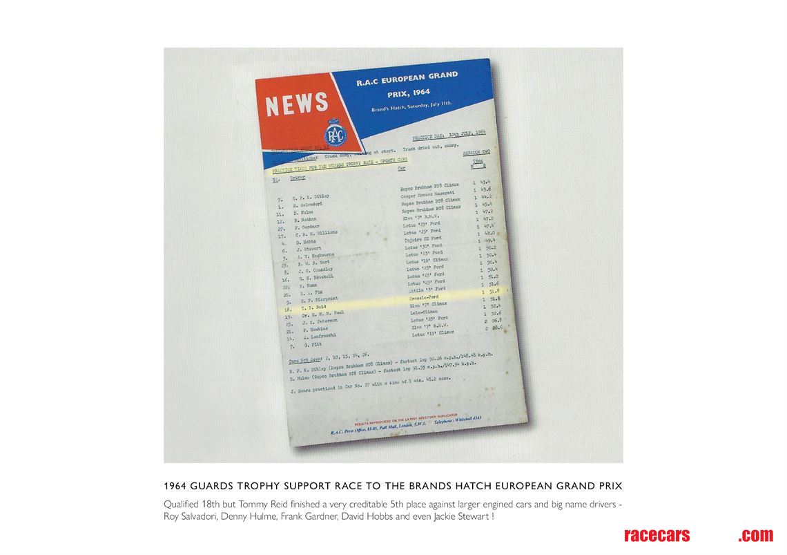 Displayed ‘solo’ for a whole week in the Royal Automobile Club’s Rotunda, commemorating the 60 year anniversary of the Crosslé 5s’ first International Race in the Guards Trophy at Brands Hatch GP in 1964 where Tommy Reid qualified 18th but finished a creditable 5th against bigger engined cars.