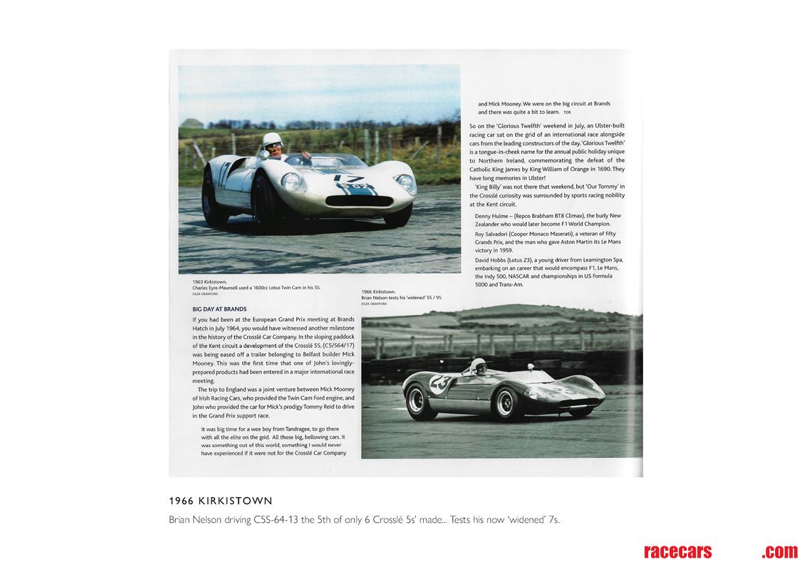 Built at the Crosslé factory in Northern Ireland. Chassis number ‘C5S-64-13’ was ordered new by renowned Irish racer Brian Nelson in March 1964. This is a very rare 5s model - as only six were built during 1963 & 1964 and only Brian Nelson’s was originally fitted with a V8 - a Daimler SP250 engine coupled to a Jack Knight gearbox (Later 7s & 9s models were fitted with larger V8 - Ford, Buick and Oldsmobile engines).