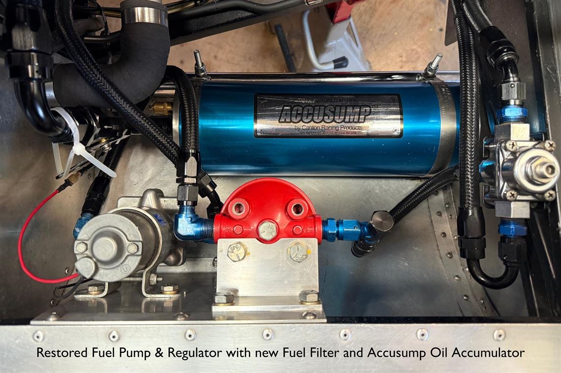 As an ultimate low oil pressure safeguard we fitted a 2 quart (1.9Ltr) Accusump Accumulator & pre oiler