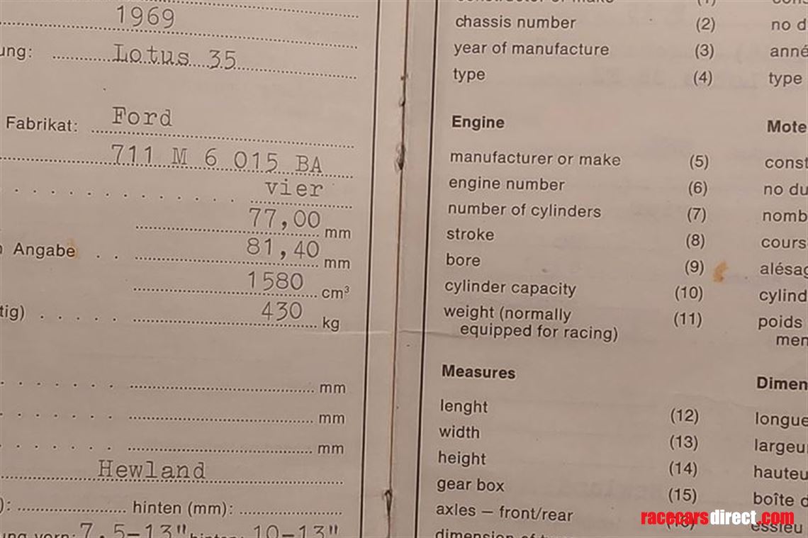 Lotus f 15 wagenpass 1969 2 engines an 711 ford and an 2 ltr BMW where installed great history