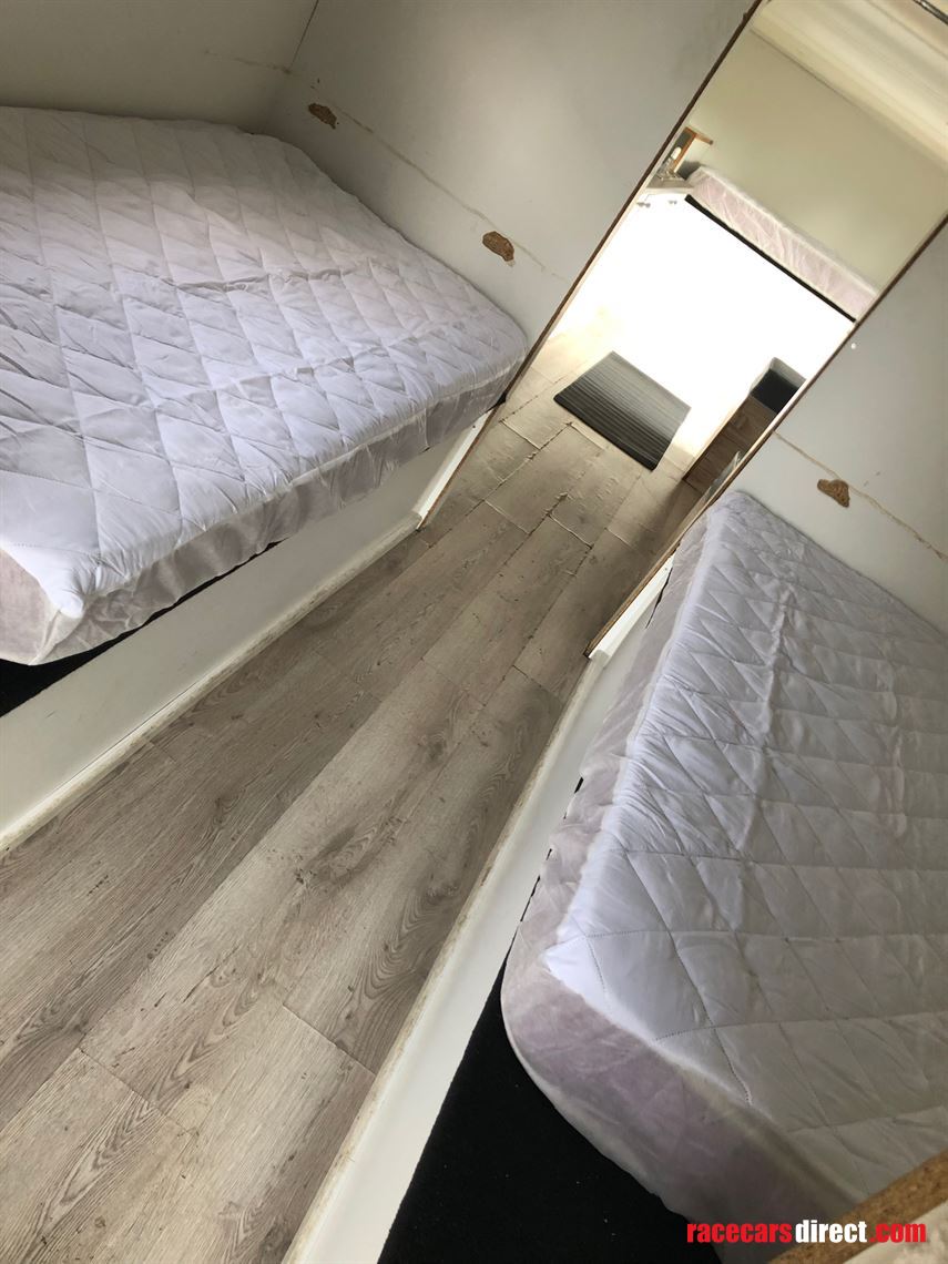 The upper floor runs the length of the truck and the lower has been converted for living in including beds, cupboards sink etc. All of this can be removed and altered easily as it's been retro fitted. It all needs a tidy up and we will obviously clear out the race spares etc as these don't come as part of the sale, just haven't had chance yet.