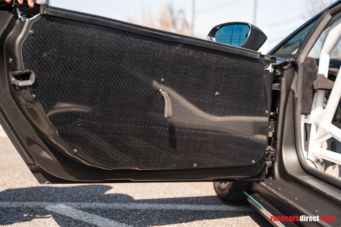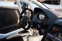 This example, sponsored by Lamborghini Houston as race #9, competed in the 2014 Lamborghini Blancpain Super Trofeo IMSA North American Racing Series. It originally had a Bianco Monocerus (Bright White) finish but was wrapped in blue with sponsorship graphics. Driven by Cody Ware under Rick Ware Racing, it contested eight races, securing an Amateur Class win at Mazda Raceway Laguna Seca and a third-place finish at Watkins Glen International.