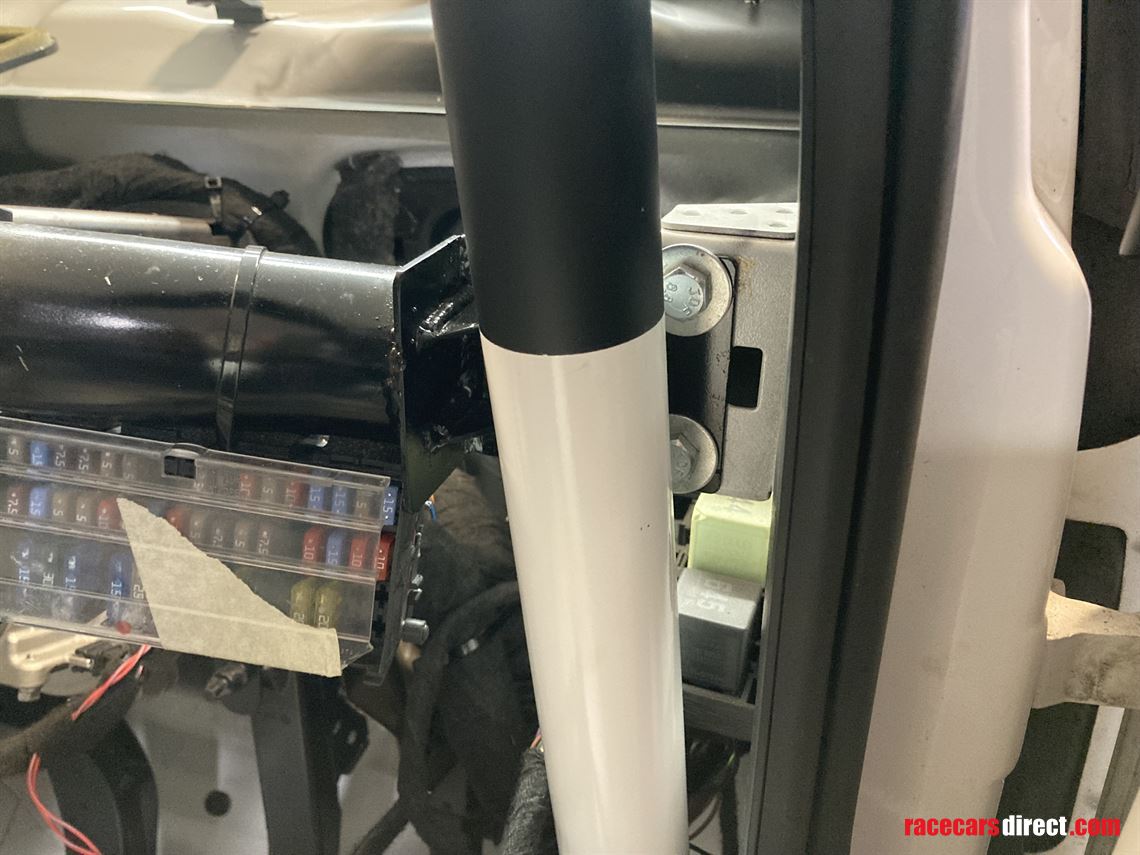 PD fire extinguisher system. Detachable steering wheel with remote horn and flick wipe/wash controls. Standalone electric windows, shift lights. All excessive wiring removed, OBD port still present. ABS ON/OFF control, separate controls for front spot and fog lights wired to the under bonnet, with single control (spot and fog) from main beam column stork. Internally mounted washer bottle, Navi foot rest with horn, roof mounted map light and floor lights. Race battery and custom retention bracket & Fuse box for easy gear box mount access. Sparaco seats exp end 2026 and Belts (8853-2016) end of 25 but have extension by 5 years per Blue book K2.1.7.