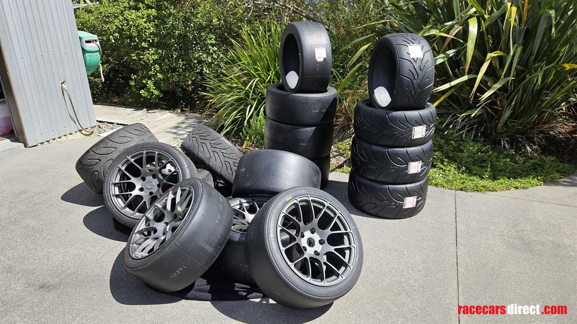 3 sets of BG Forged wheel, 2 x sets of Khumo treaded tyres & 3 sets of Yokohama slicks – good for testing etc.