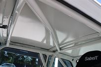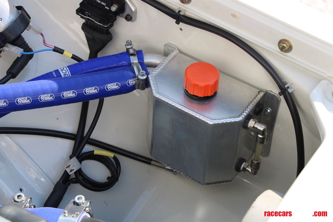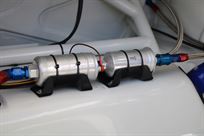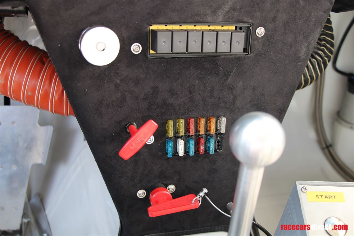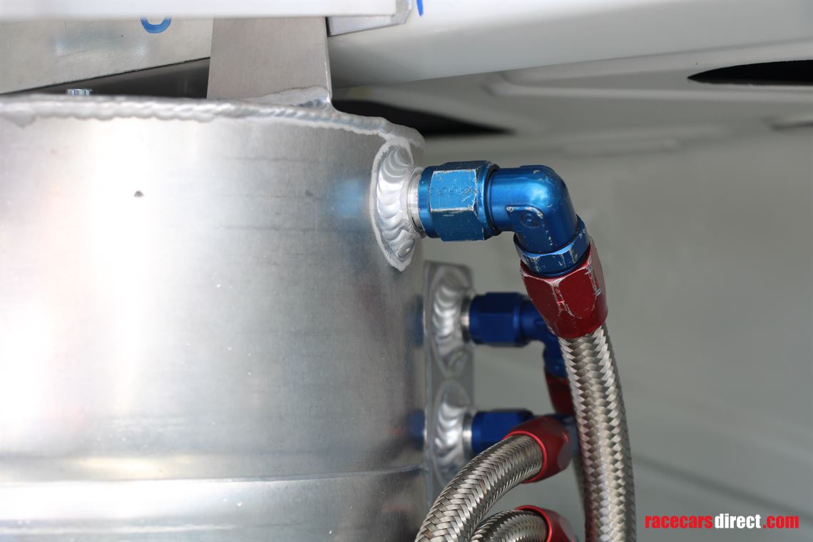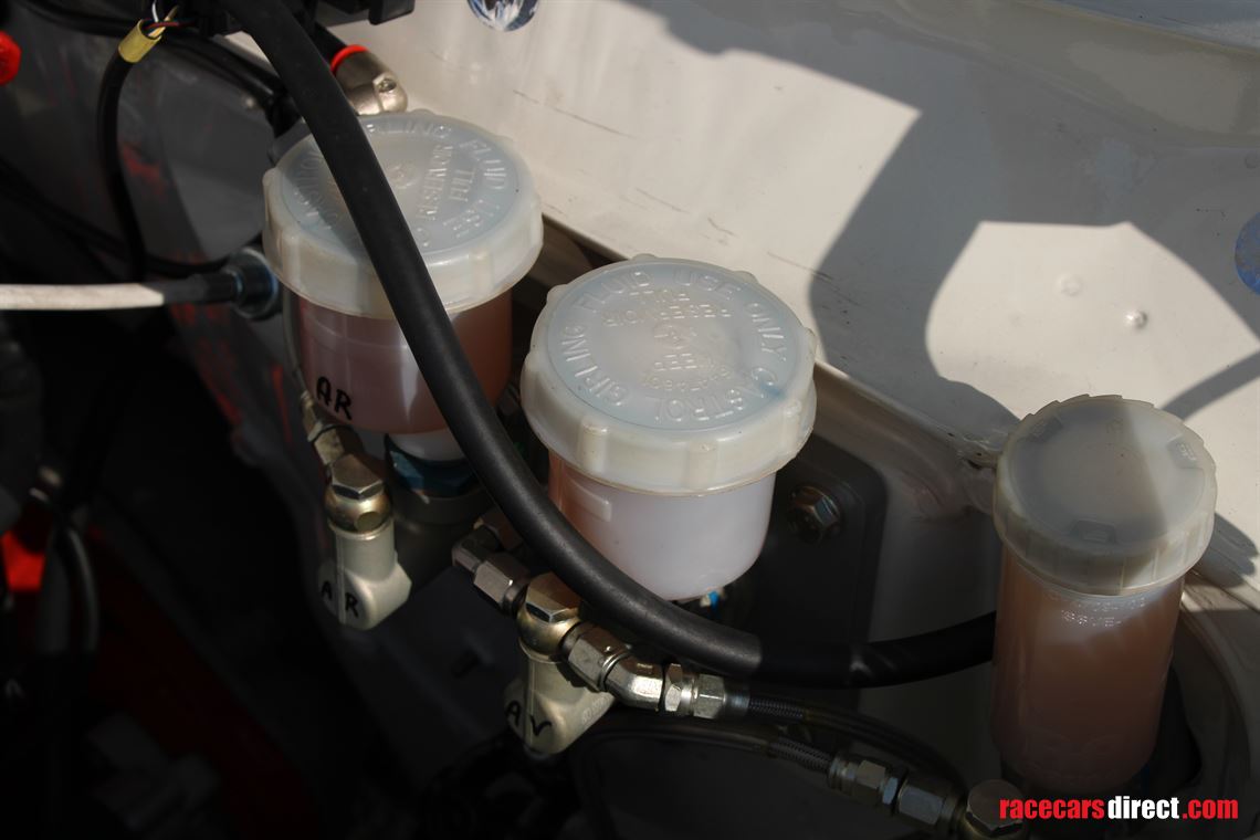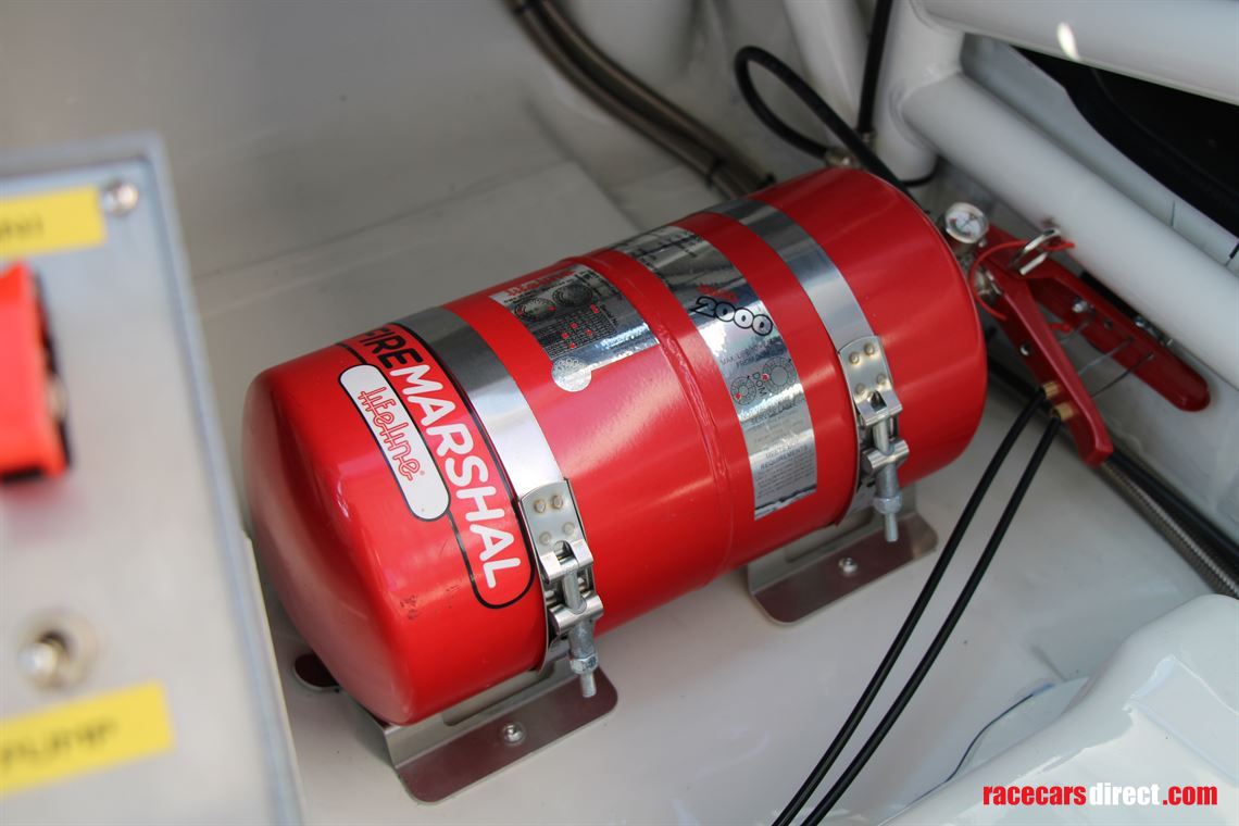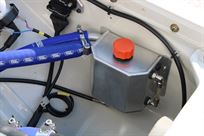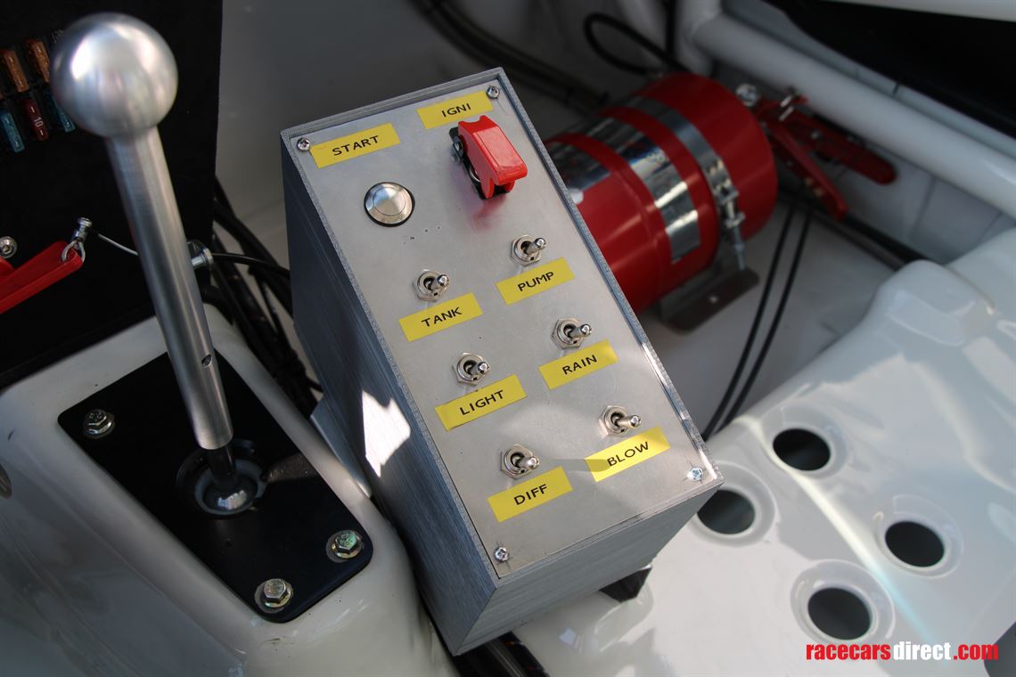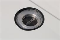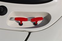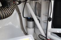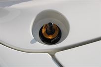 When looking at the exterior of this car, we can find a beautifully finished white paintjob. This colour was applied on every single panel of the car and the execution of the paintjob was done to a very high standard. The engine compartment, luggage area, underside and interior are all finished in the exterior colour and give the car a very clean and sterile presence. To prepare the car further for the track, an air jack system was fitted. This allows for a quick lifting of the car and eases the process of changing the tyres. The wheels of the tyres are the period correct BBS centerlock rims. These are the only ones that are FIA approved for this car. When continuing on the side, we can also find the side mounted exhaust pipe. This is a free flowing system without any mufflers present. This lets the car really come to life, once started. When the car is used hard on track, this side exhaust will even shoot flames on the overrun. When we look at the back of this 240, we can see that the boot lid has been upgraded. It has been fitted with the correct rear spoiler and has 2 cutouts for the fuel nozzle, one on each side of the car. These allow for quick refuelling during a race. Something not very visual for most, but important on the race track are the front and rear bumpers. These have been shortened and positioned more closely to the bodywork. The front bumper was even lowered to generate a more aerodynamically efficient surface on the front of the car. Last but not least, a battery disconnect and fire extinguisher lever were fitted on the front drivers side of the car. This allows for emergency workers to activate these from the exterior of the car in case of an accident.