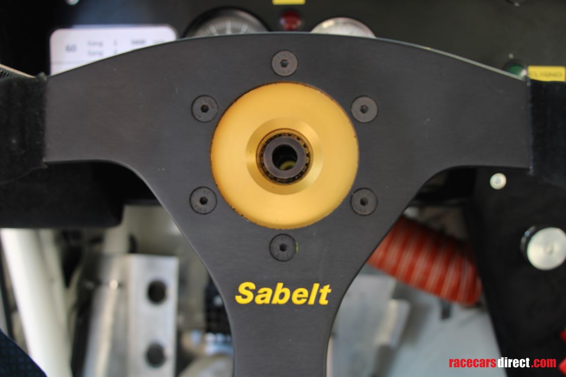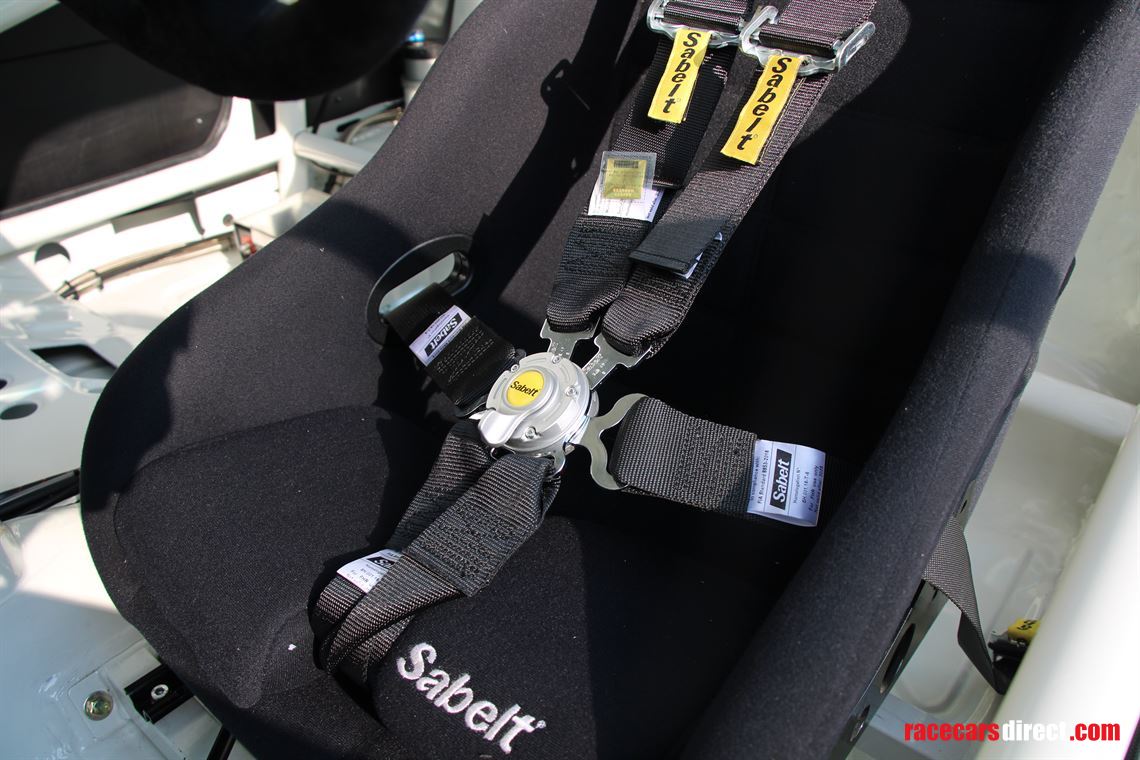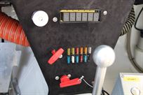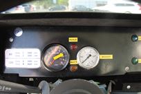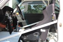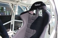 When going over to the interior of the car, the first thing that is apparent is the lack of upholstery and interior comfort. It has been completely stripped and all of the unnecessary items have been removed. On the drivers side, we can find a full Sabelt racing kit. This comprises of the bucket seat, removable steering wheel and the racing harness. All of which, have been FIA approved for racing. The dashboard of the car is still original, but has been flocked to prevent any reflection of the sun on the dashboard. Right in front of the driver, we can see the speedometer and the boost pressure gauge. On the right side, all of the auxiliary gauges have been placed so they are still very visible for the driver. Looking at the center console, we can find all of the buttons to control the car. These have all been custom made for this series of cars. To save some weight on the car, the old doorpanels were removed and replaced with custom Carbon fibre examples that have been painted black. Also in the interior, we can find the fire extinguisher. This can be activated by the touch of a switch to go off in the engine compartment in a matter of seconds.