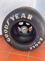 Original Benetton B192 OZ rear wheel with OZ rim and Goodyear tyre. The rim is in good condition. The tyre is brittle due to its age, but it keeps the pressure. Worldwide shipping is possible against take over of the the shipping costs.