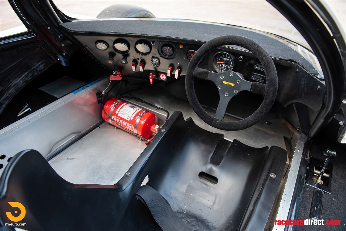 Final assembly of the car was done by TurboKraft in Arizona, who fitted the drivetrain. Inside the low-profile centered canopy, the purposeful interior, Momo steering wheel, full instrumentation, and supporting switches for engine management systems are professionally presented poised for the next driver to experience this car at future events. Prepped for vintage racing, the car is also equipped with a fire suppression system and the seat is fitted with Racetech seat belts. Having completed a track test session to test the engine, gearbox, and brakes, the systems have been properly prepared but will benefit from additional sorting prior to sustained use or event participation.