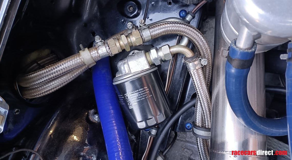 Remote oil filter conversion with Oil cooler and braided