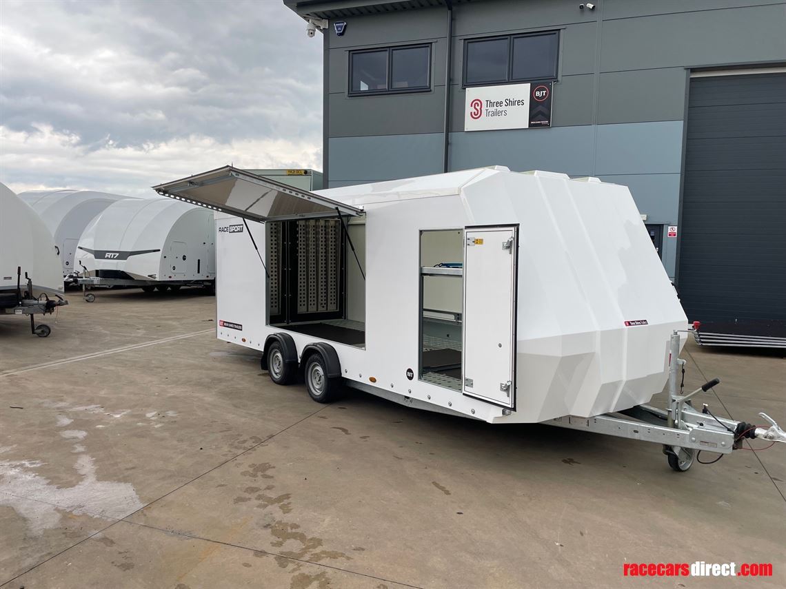 We have 5m and 5.5m race sports in stock and you can have whatever options you would like on them just call Andy 07708 471031 or email andy@threeshirestrailers.co.uk