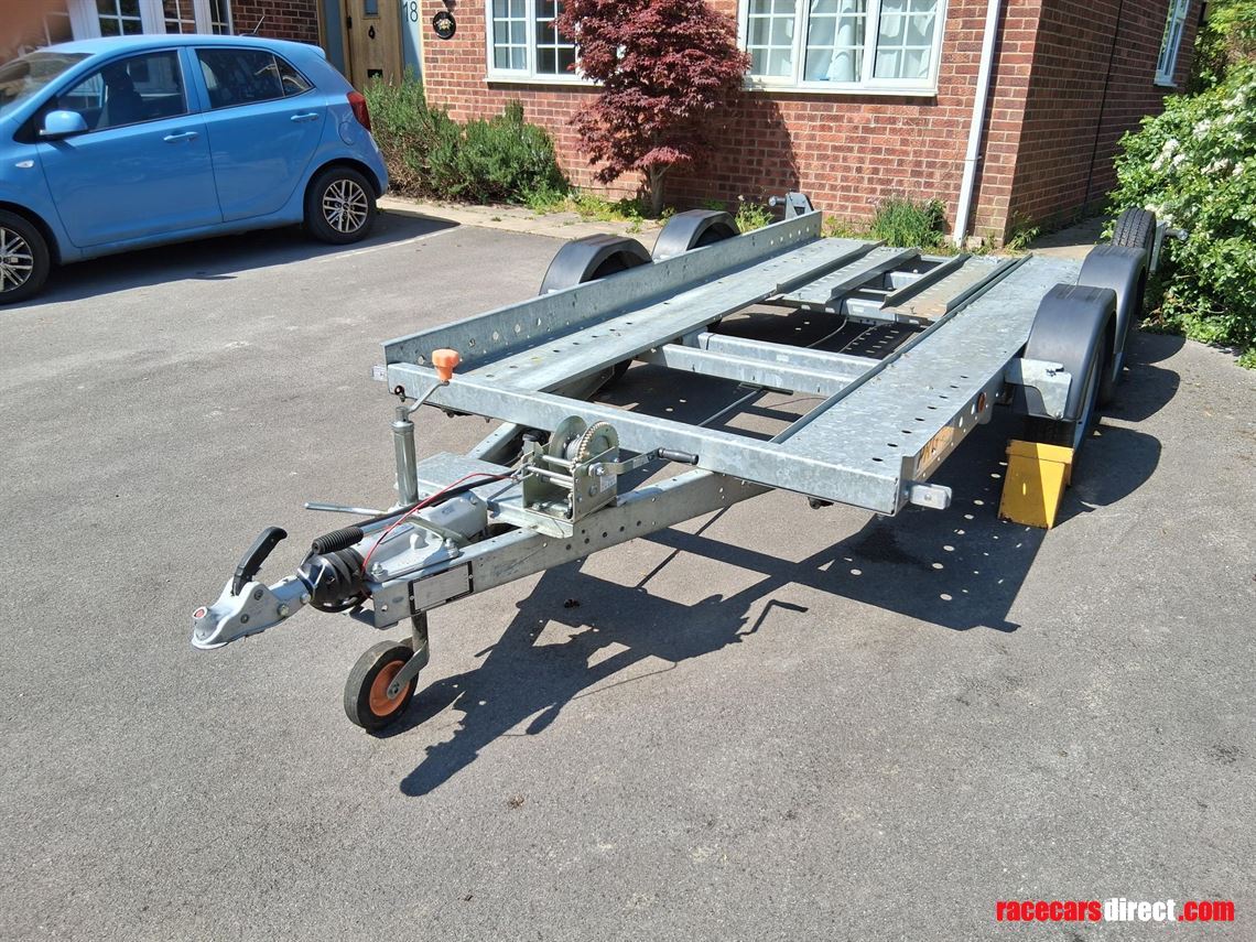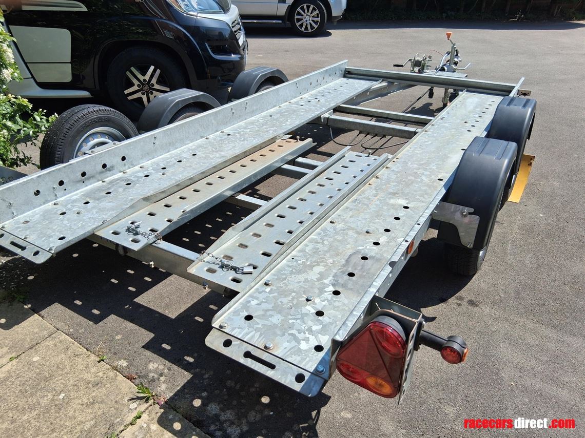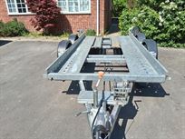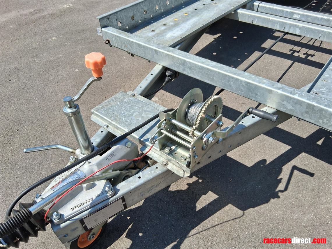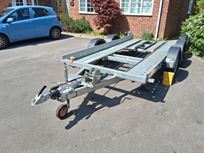 This is a small trailer, ideal for a Caterham, small GT car or small historic. It is plated for 2,000 kg and unladed is about 500 kg, easy for a single person to move.