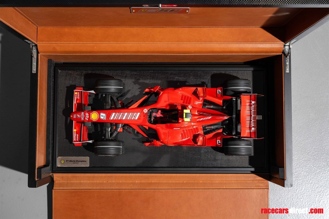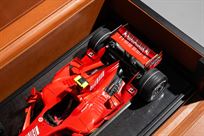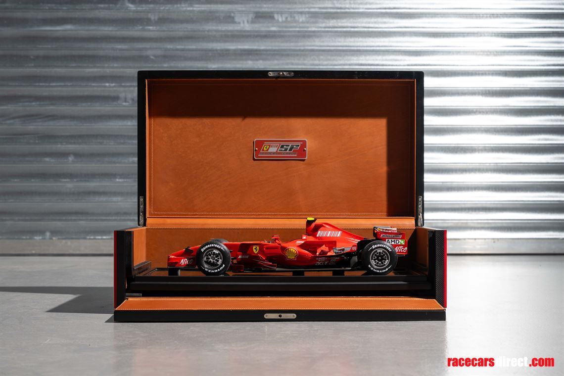 1:8 Scale Ferrari F2007 (2007) British Grand Prix Amalgam Model. The car that powered Kimi Räikkönen and Scuderia Ferrari to double 2007 FIA Formula One World Championship glory, the F2007 was a contender in one of the most exciting seasons in Formula 1 history. Presented in a stylish carbon fibre box with tan leather interior and white stitching.