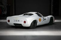 The 910 was introduced in 1966 as a successor to the 906 after evolving from the development of the 1965 Ollon-Villars Spyder hill-climb prototype. Featuring targa coupe styling and Formula 1-style 13” wheels, the 910 gave Porsche a sweep of the top four positions in the 1967 Nürburgring 1000 km as well as a victory in the 1967 Targa Florio. Simulating the 910’s composition of unstressed fiberglass panels over a tubular spaceframe, this re-creation’s chassis and body were constructed by Erik Shahoian’s ID8 Design in 2012. An additional tube is incorporated into the roll-hoop structure of the replica frame.