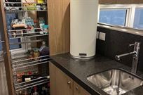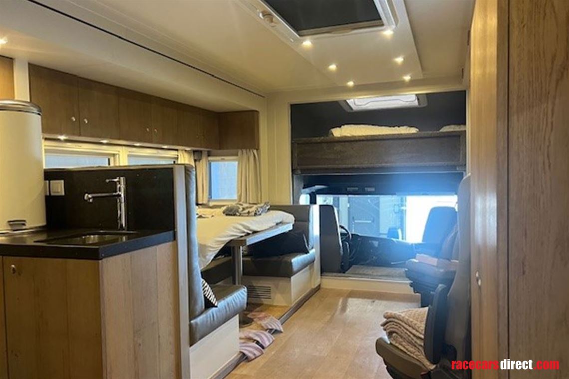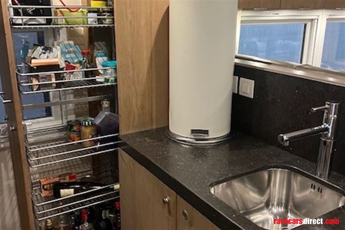 Super deluxe 18T camper, built by Reydams 2010 (halen,BE) slide out (kitchen & living room) 3 double beds (garage + 1person option bed), 3 TV + Bose surround TV system, satelite, 400L water tank, 400L waste tank, generator, outside coffee bar (fridge), solar panels, automatic big tent, warm water, heating, etc.