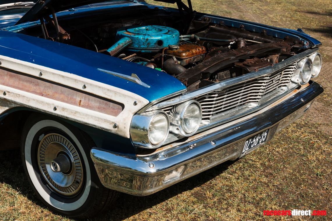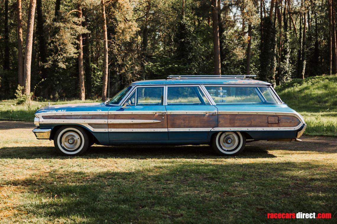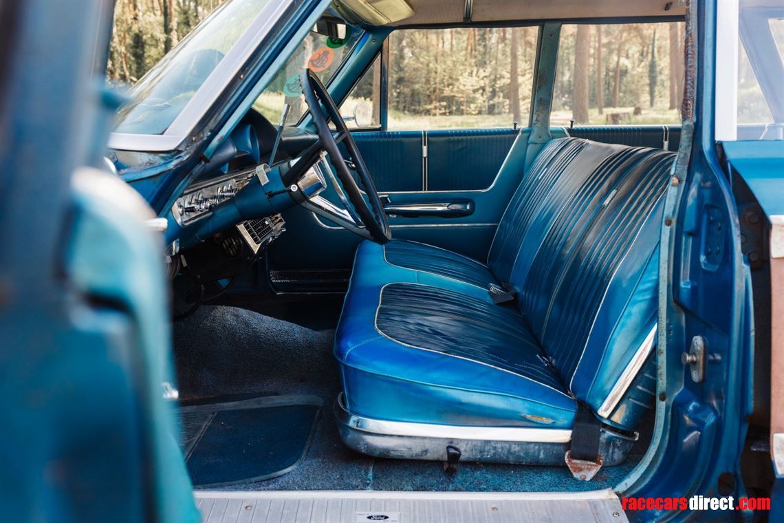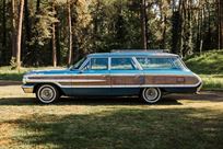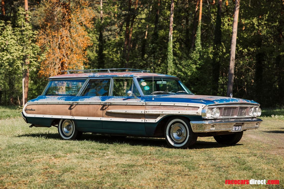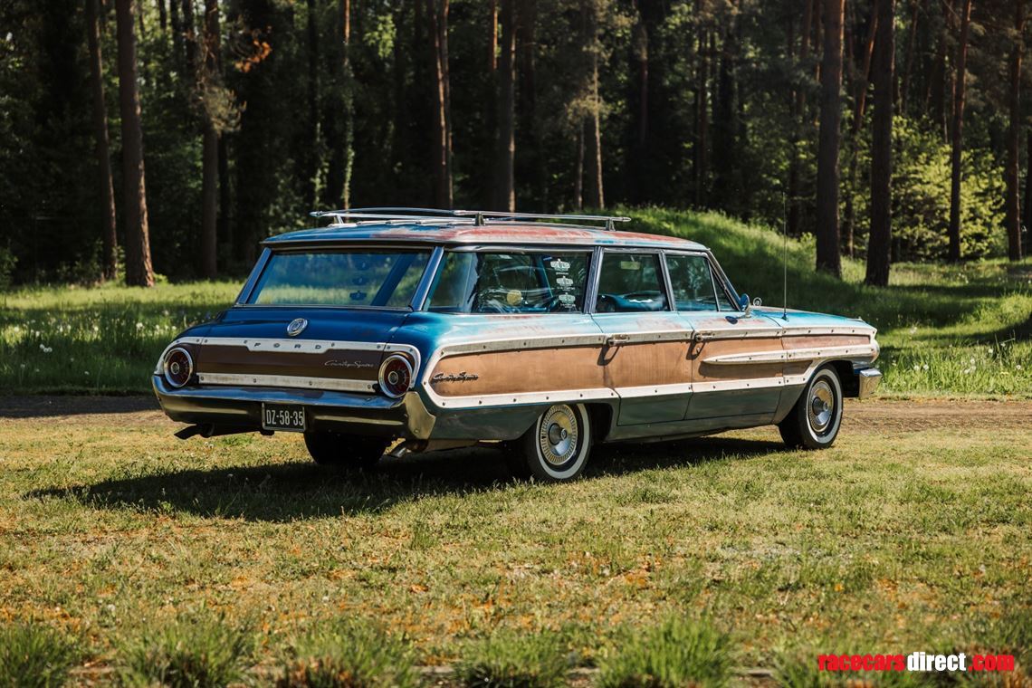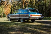 The 1964 Ford Country Squire is a classic full-size station wagon that epitomizes the mid-20th-century American family vehicle. Part of Ford's Galaxie 500 series, it features a distinct woodgrain paneling on its sides, a hallmark of the Country Squire line. This eight-passenger wagon is powered by a range of V8 engine options, paired with either manual or automatic transmissions. Known for its spacious interior, the Country Squire offered practicality and style. Its smooth ride, robust construction, and retro aesthetic make it a nostalgic icon of the era.
