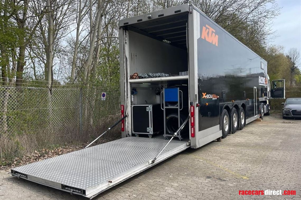 Newly inspected – and with the parts on the invoice that have been replaced. With automatic staircase/repo pull-out. Large kitchen/living area with refrigerator/oven and lots of drawer space. 2 decks – upper for cars. Everything covered with floor slabs at the bottom. 2 pallet pull-outs on the lower level of the repo. 2 x air tanks for the air system are in the lower deck. Remote control for the tailgate