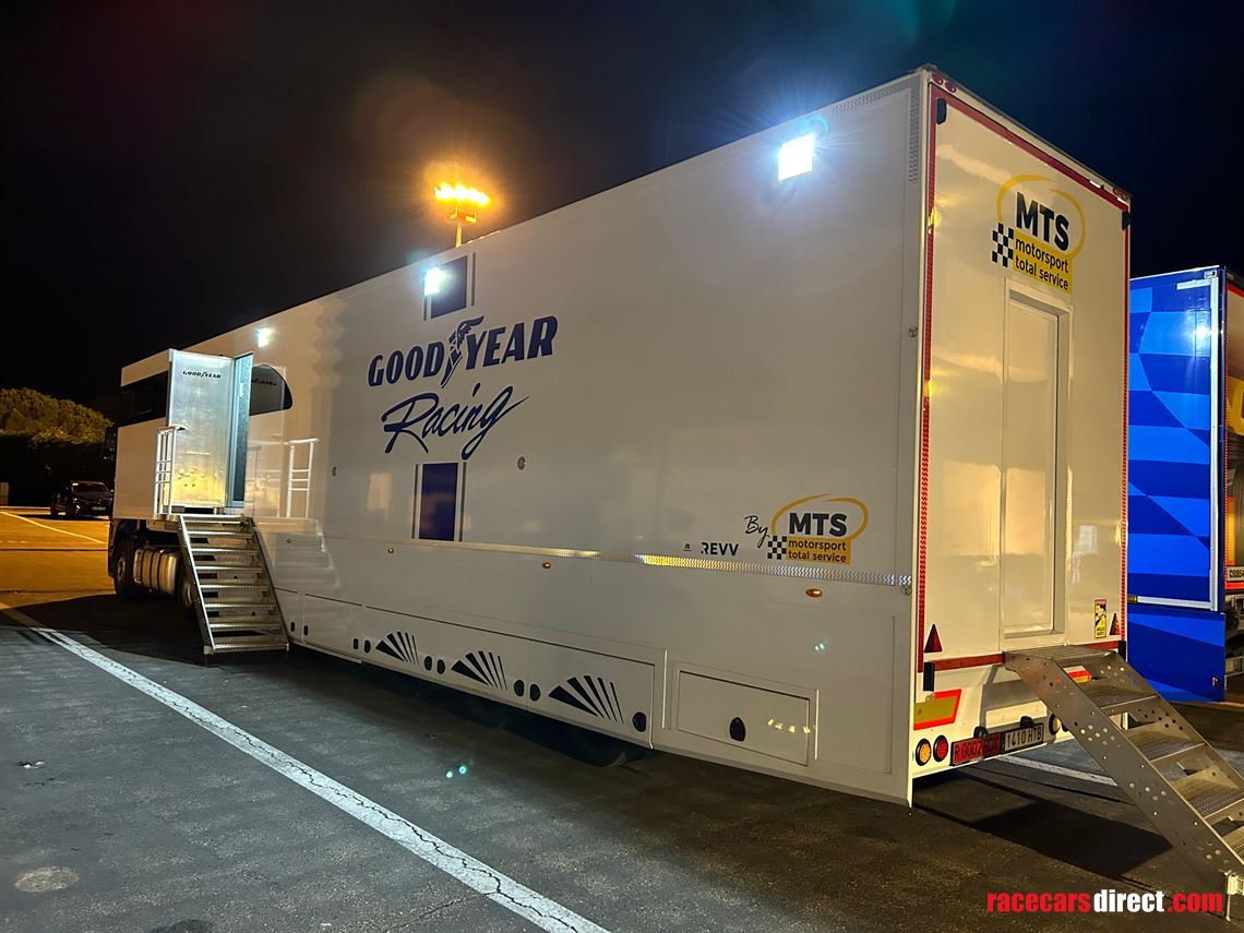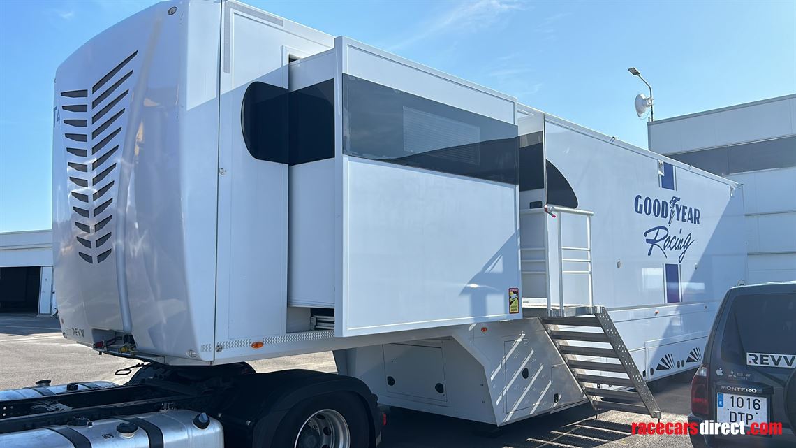 Racetrailer in perfect conditions. Spanish documents, fresh MOT and fully serviced. Expandable big office with leather sofas, big TV screen,air conditioned, fridge, plugs, internet and all the needed equipment for work. 220V .Batery charger , bif tail lift and two flats for transport 2/3 vehicles + equipment.Belly lockers. Originally built for single seaters but valid also for cars. New trailer arrival forces sale.