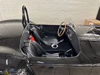 Cockpit: black Connolly leather seats and black Wilton wool carpeting, with lap belts and shoulder harnesses for both the driver and passenger. All hardware is like original competition cobra with AC hardwood-rimmed steering wheel, Smiths gauges, Lucas switches, and floor-mounted AC pedals like original.