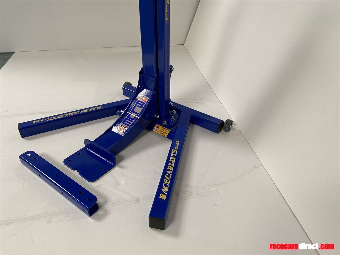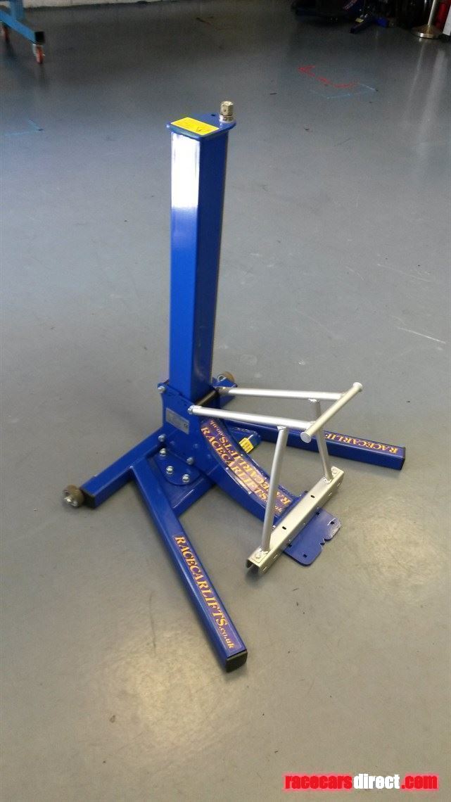 Race car lifts are a cost effective and uncomplicated alternative to expensive air lifts, the car can be raised to the optimum working height and safely supported on stands in around 45 seconds. The lifts are fitted with transport wheels and so are ideal for pit, paddock or workshop.