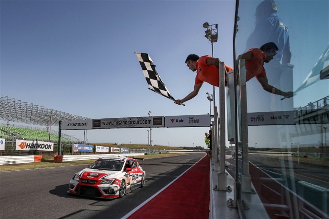 The MONLAU COMPETICION SEAT LCR TCR V3 DSG (#107, Jurgen Smet/Jose Manuel Perez Aicart/Alba Cano Ramirez/Jaime Font Casas) has won the Hankook 24H MISANO. After 738 laps on the 4.226 kilometre Misano World Circuit Marco Simoncelli, equalling a 3,118.78 kilometre distance, Jose Manuel Perez Aicart crossed the finish line to secure the team's second outright victory in the third round of the 2017 24H TOURING CAR ENDURANCE SERIES powered by Hankook. 13 laps behind the winners, the Wimmer Werk Motorsport SEAT LCR TCR V3 DSG (#266, Felix Wimmer/Matthias Kaiser/Martin Gasser/Peter Gross) took home second place after a consistent race. These two TCR class finally held the upper hand in the tough battle against the SP3-GT4 teams. The SP3-GT4 entered Semspeed Peugeot 308 Racing Cup (#226, Anthony Lambert/Pierre Dupont/François Semoulin/Benoît Semoulin) finished in third place overall and thereby won the class.