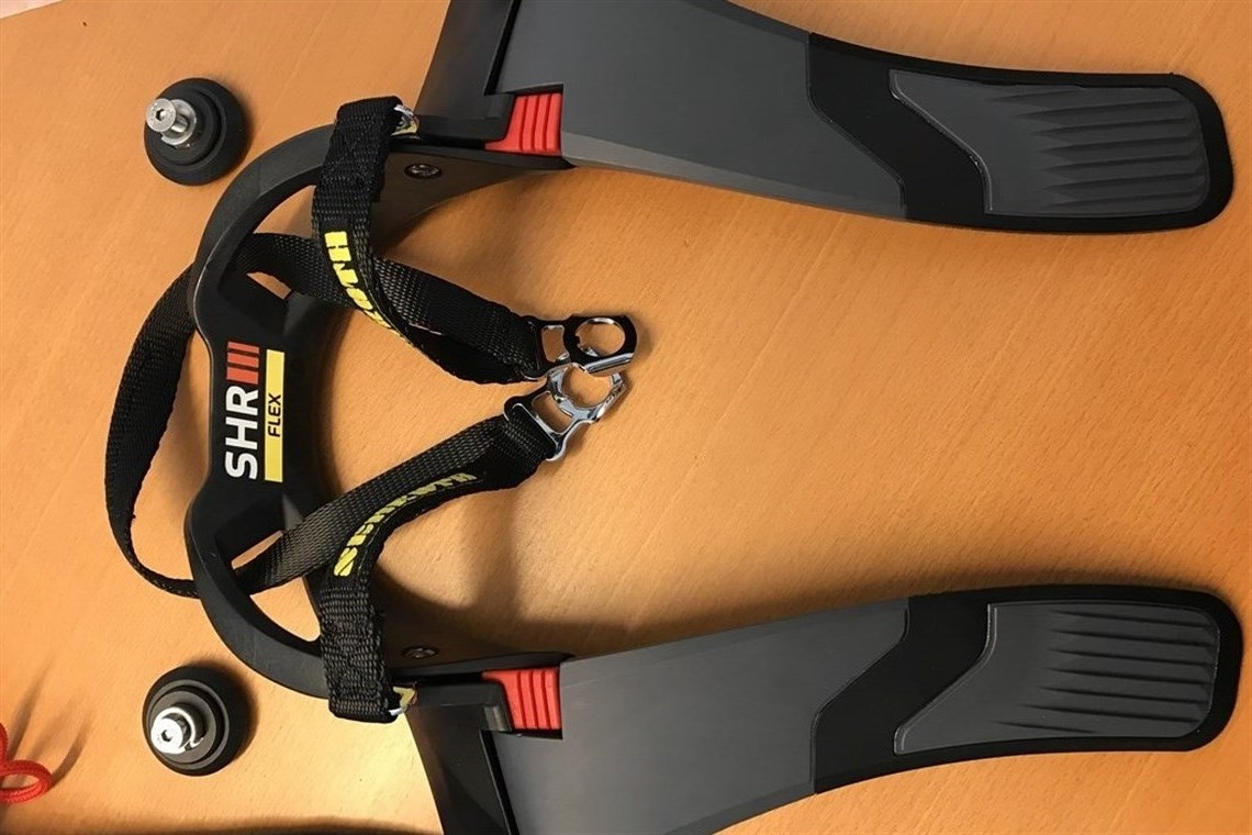 The SHR Flex from Schroth features a unique design in order to accommodate all types of race car seat reclines. Manufactured from high strength Carbon reinforced material, the SHR Flex has been designed to provide superior levels of comfort and protection. The device angle is able to be adjusted to suit everything from the more upright seating positions of saloon and GT cars, to laid back single seaters, making it the ideal choice for drivers with more than one type of car. In the event of an impact, the SHR Flex features a load controlling bump stop on each leg which helps to make the initial loading on the tether smoother alongside creating the correct angle for the collar. The tethers themselves are floating to enable a free range of movement from left to right while also providing some extra side support.