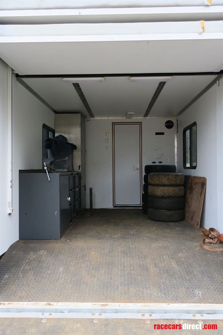 Gulf Stream Bounty hunter, great for motor sport, good size garage at the rear, large rear ramp door, room for car, go karts, motorbikes, quads... with lockers and work bench, 2 electric bunk beds that retract to the ceiling when not needed, door way into the main camper, bathroom on left with full size shower, toilet, sink and vanity area with good size cupboards, on the right there are steps up to a bedroom area that is above the garage , double bed and storage up there,back down stairs, fridge freezer, hob,large combi microwave, dining area that converts to double bed, large sofa that converts to double be, separate 2 seater sofa, ample of cupboards and storage, double wardrobe, all usual American comforts, electric awning, separate large full awning, lots of belly lockers, outside lighting, tv.......