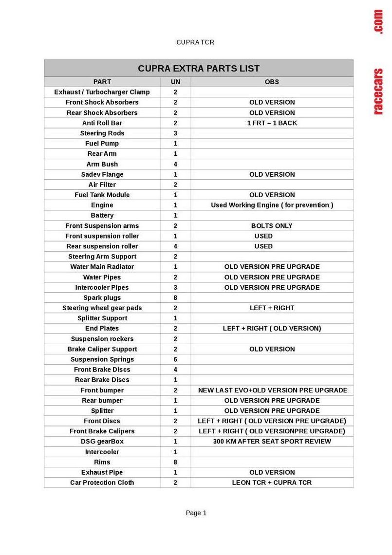 CUPRA EXTRA PARTS LIST