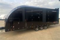 RACETRAILER.COM offers a brand new race trailer with sleeping area, kitchen and space for 4 cars
