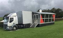 Double Deck Racetrailer with office and place to sleep. 13x8m Stegmaier tent and floor.